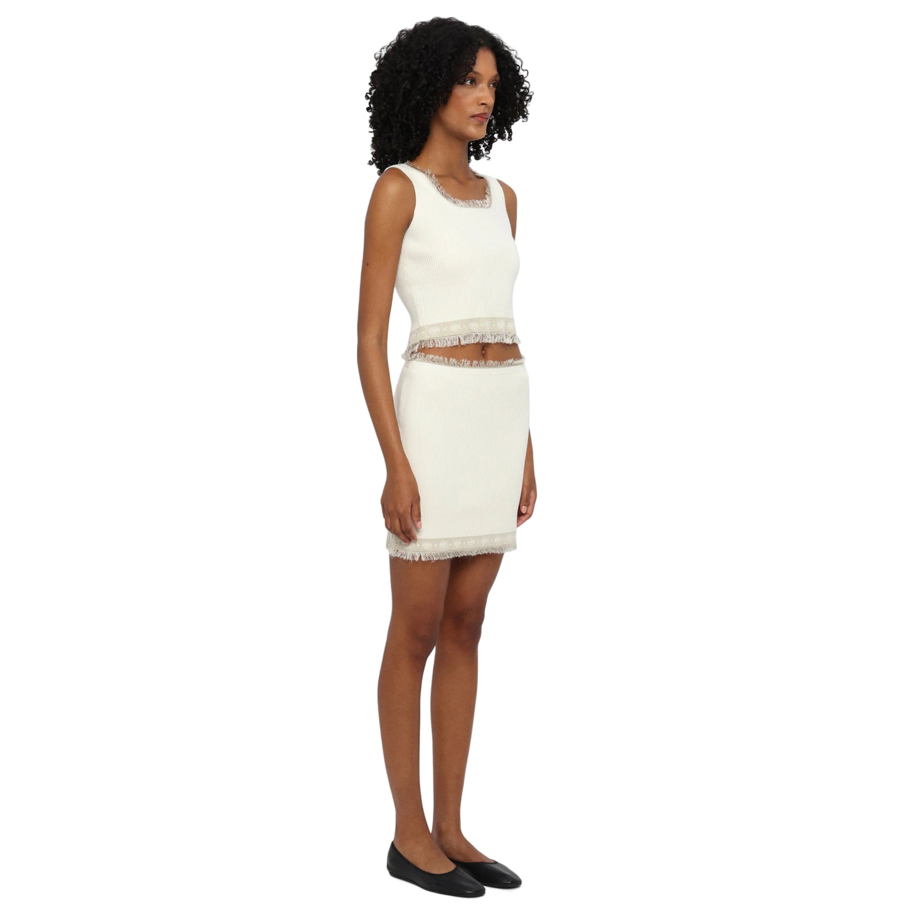Elevate your casual look with this Chiara Ferragni T-Shirt Knit Fringe White. Embellished with fringe details, this knit tee adds a playful yet chic touch to your wardrobe. Perfect for a day out with friends or a casual night on the town. Elevate your style with the one and only Chiara Ferragni.
